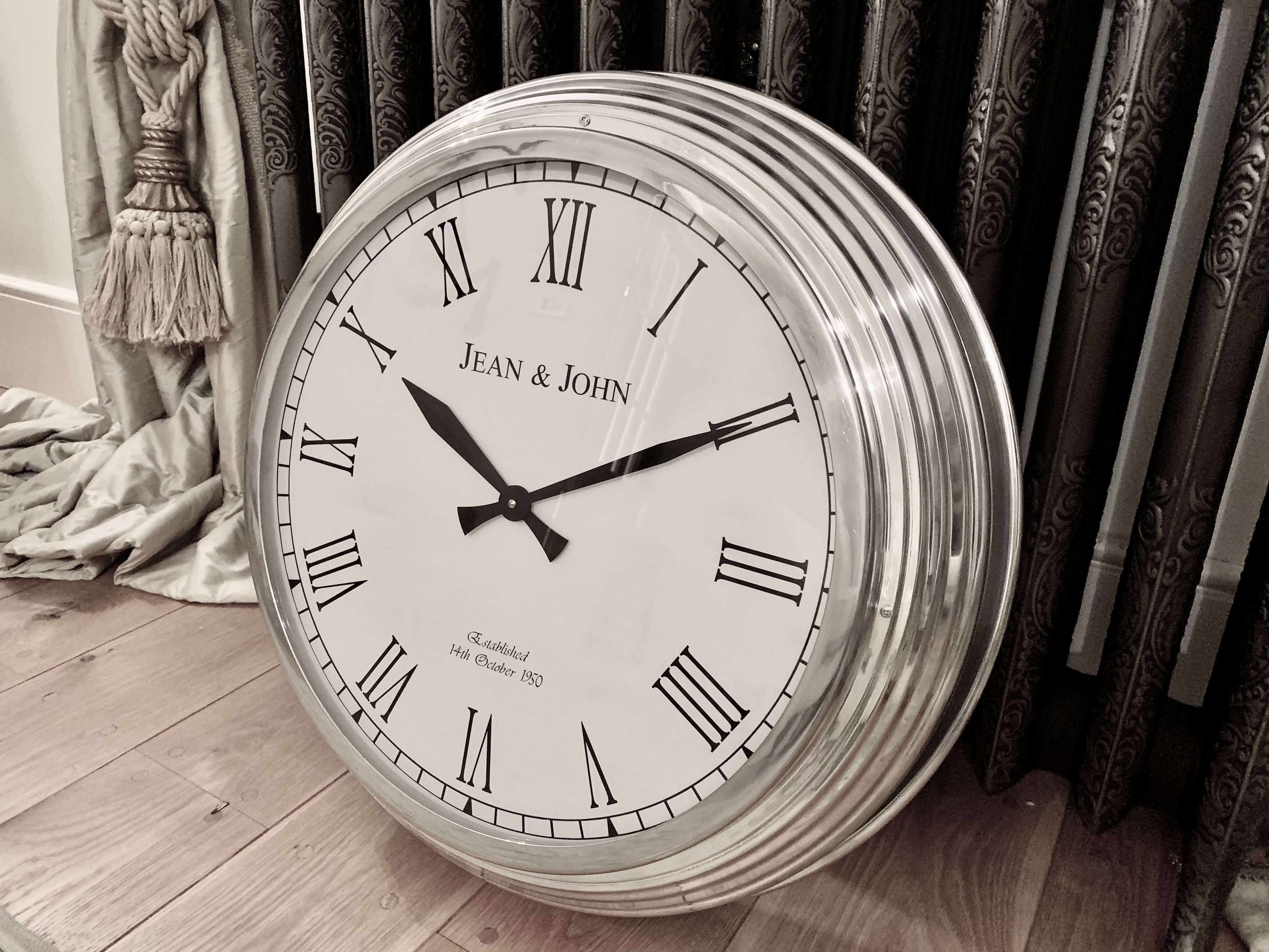 This is the Chrome effect medium size clock which was made as a gift to celebrate a 70th Wedding Anniversary it has an additional charge of £50 for the hand polishing
