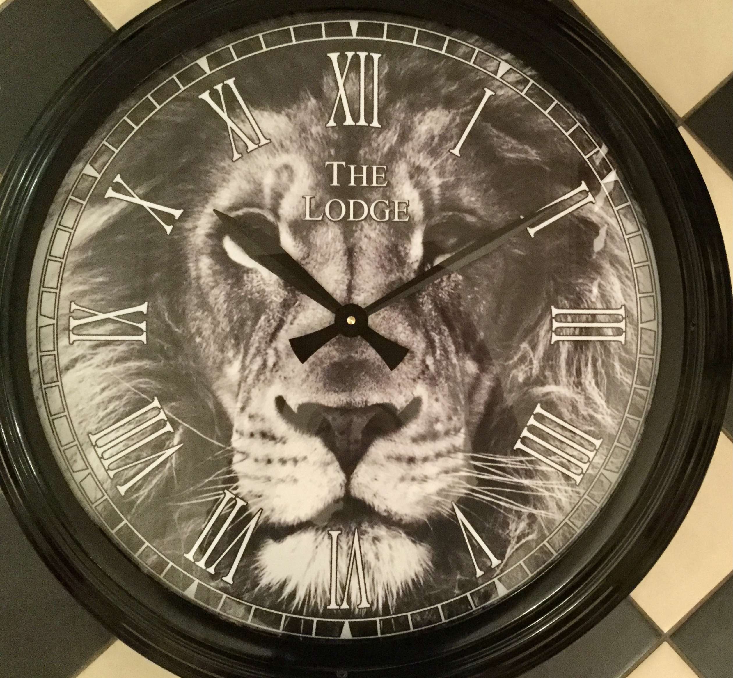 This medium clock was made for a gift for someone with a love of lions. The customer emailed the image which we printed and then added their house name
