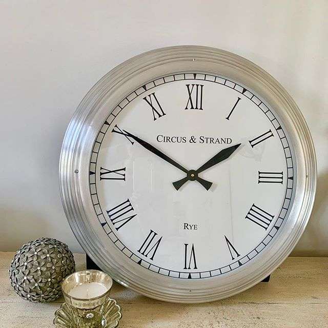 Our medium size stainless effect clock with white dial looks great in a kitchen with all your stainless appliances